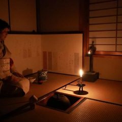 城山旅館の店頭で、高山茶筅でたてた抹茶と和菓子を店頭でお出しします。